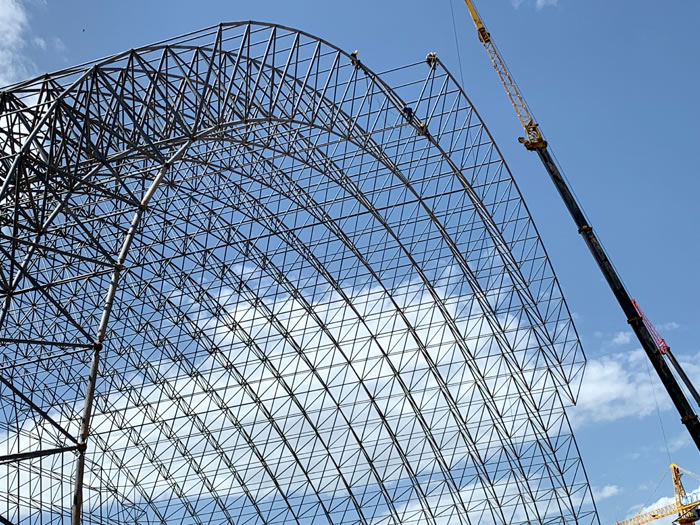 (2)网架加工前应对现场尺寸进行复测,确认无误后方可进行加工、安装;网架制作、运输、安装应遵守《空间网格结构技术规程》JGJ7-2010、《钢网架芜湖螺栓球节点》JG/T 10-2009、《钢网架芜湖螺栓球节点用高强度螺栓》 GB/T 16939-2016、《芜湖钢结构芜湖工程芜湖施工规范》 GB50755-2012、《芜湖钢结构芜湖工程芜湖施工质量验收标准》 GB50205-2020。
